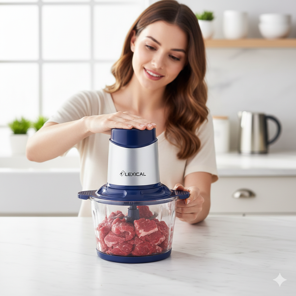 Hachoir électrique Lexical LCH-1916 Bleu – 3L - 400W - Bol Verre - 4 Lames Inox