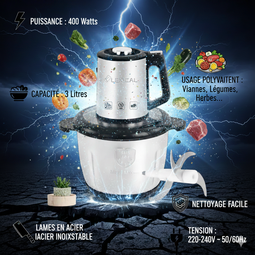 Préparez vos recettes préférées avec rapidité et facilité grâce au hachoir électrique Lexical LCH-1960 !